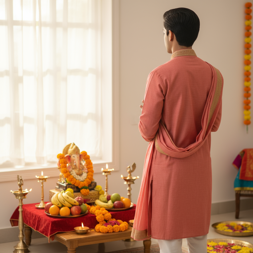 Symbol of Tradition – Wearing a kurta is often a mark of respect during religious ceremonies, festivals, and family functions.