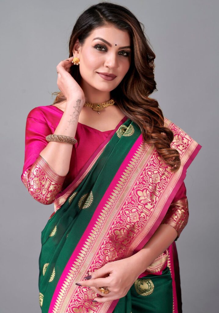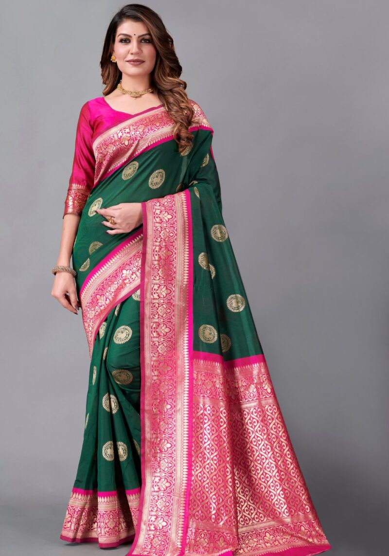 011-GREEN PINK Art Silk Saree with Unique Pastel Blend