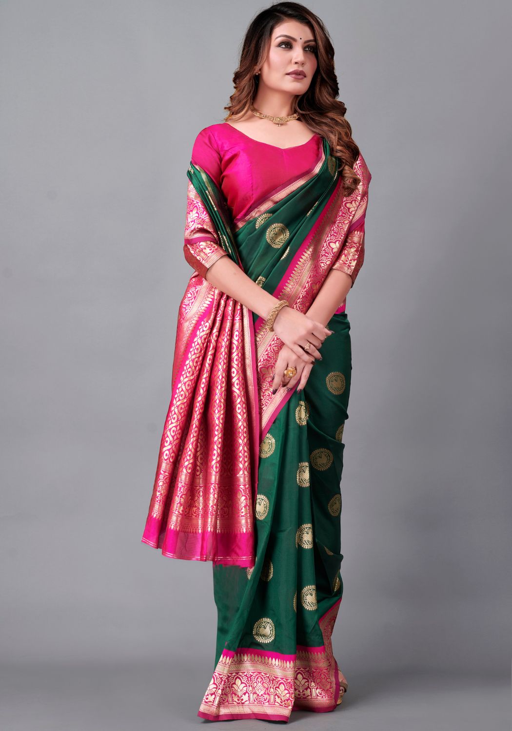 011-Green Pink Art Silk Saree Collection Full Catalog Available At Wholesale Rate.