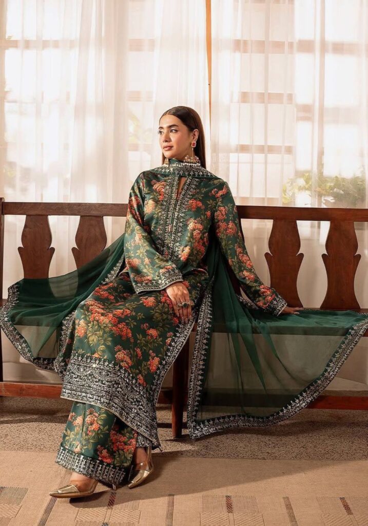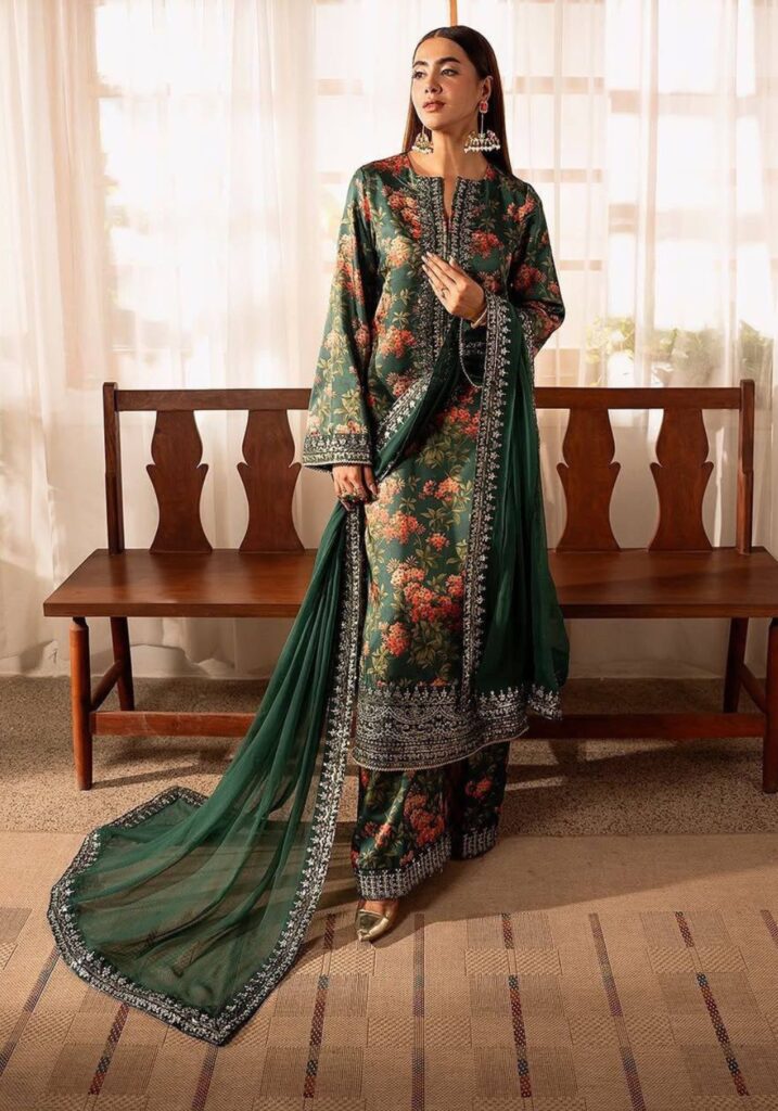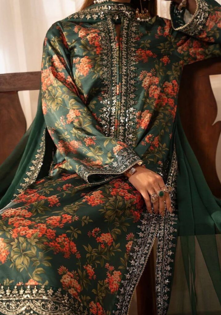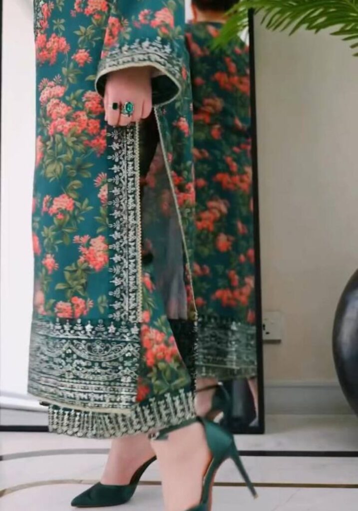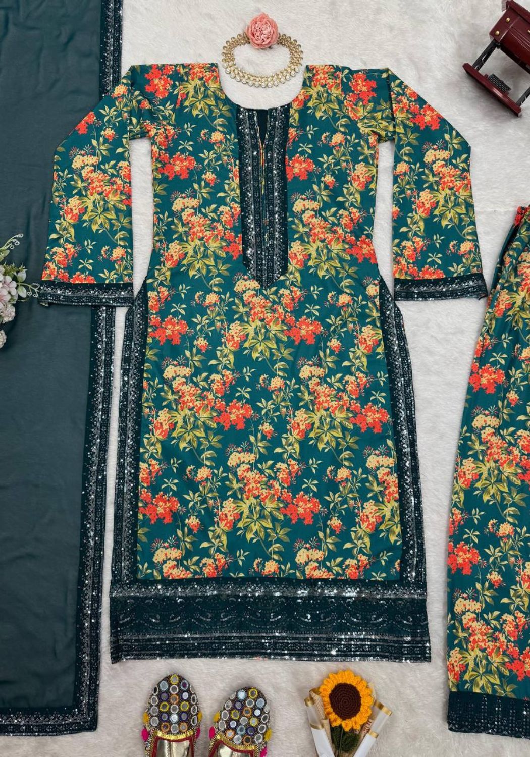 Fabric Type | Top:- French silk , Inner : Micro , Work: Thread with Sequence with Digital print ,Height: 46 inch, Pent:-French silk , Work : thread with Sequence with Digital print , Stich :- Full stitch upto 44 with elastic, Dupatta:- Faux Georgette , Work : thread with Sequence with fourside lace border Length : 2.2 meter |