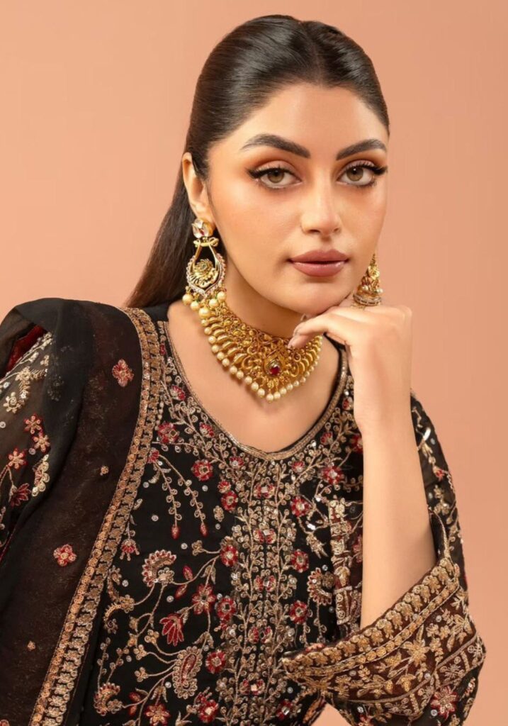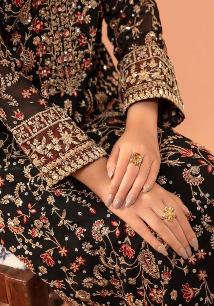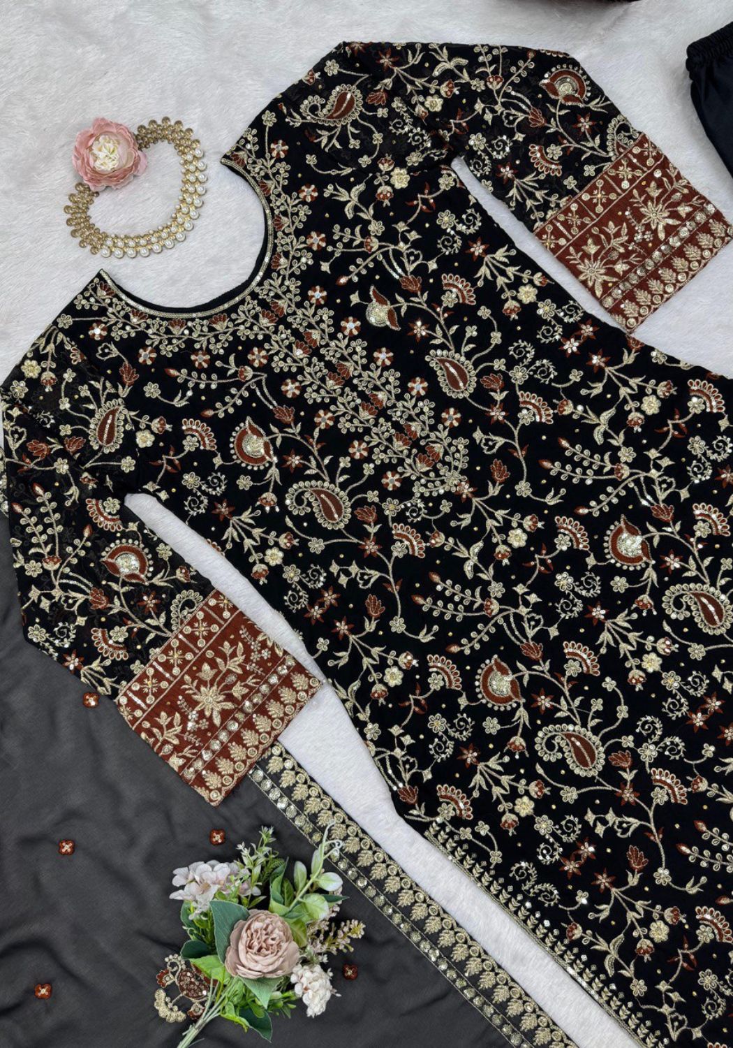 Fabric Type | Top: Faux Georgette , Inner : Micro , Work. : thread with sequence with Real Diamond Pent :- Micro cotton, Stitch :- Full stitch upto 44 with elastic |