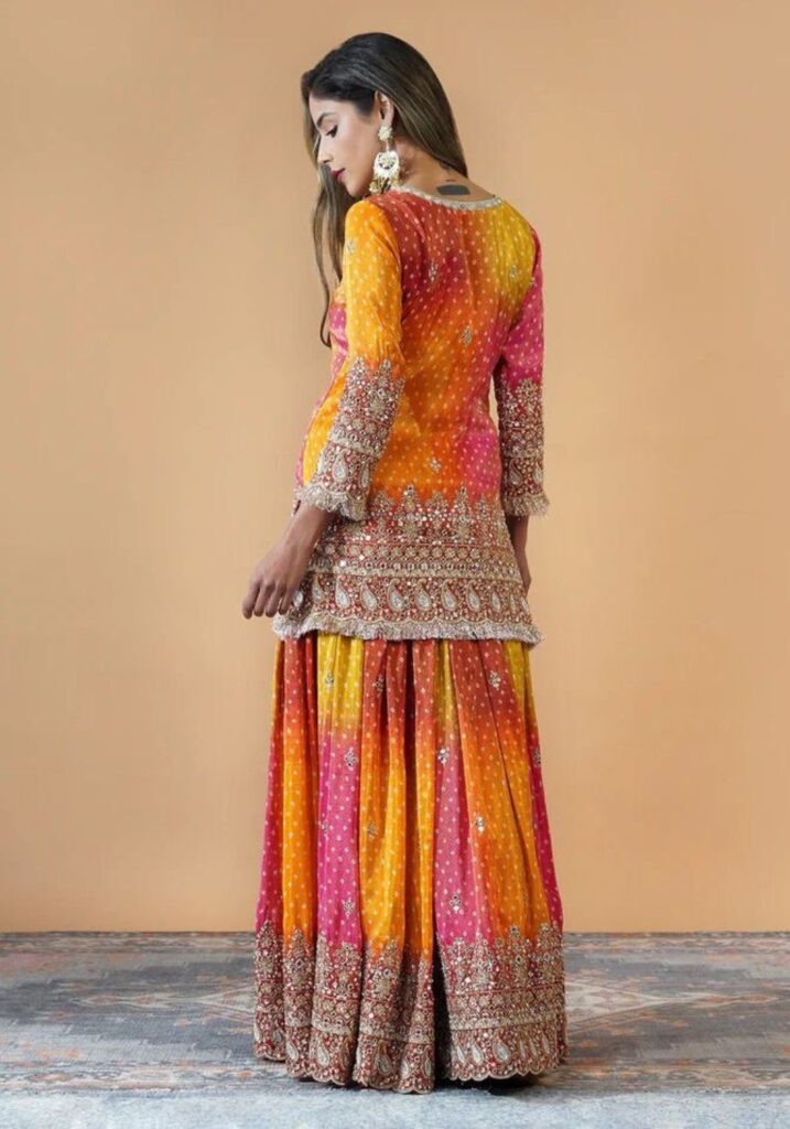 Fabric Type | Top : Chinon silk , Inner : Micro , Work : Digital print with thread with sequence with Real mirror work Palazzo:- Chinon silk , Work. :- Digital print with thread with Sequence with Real mirror work , Stich :- Full stitch upto 44 with elastic Dupatta: Chinon silk , Work. : thread with Sequence with Real mirror work with Fourside lace border , Length: 2.2 meter |