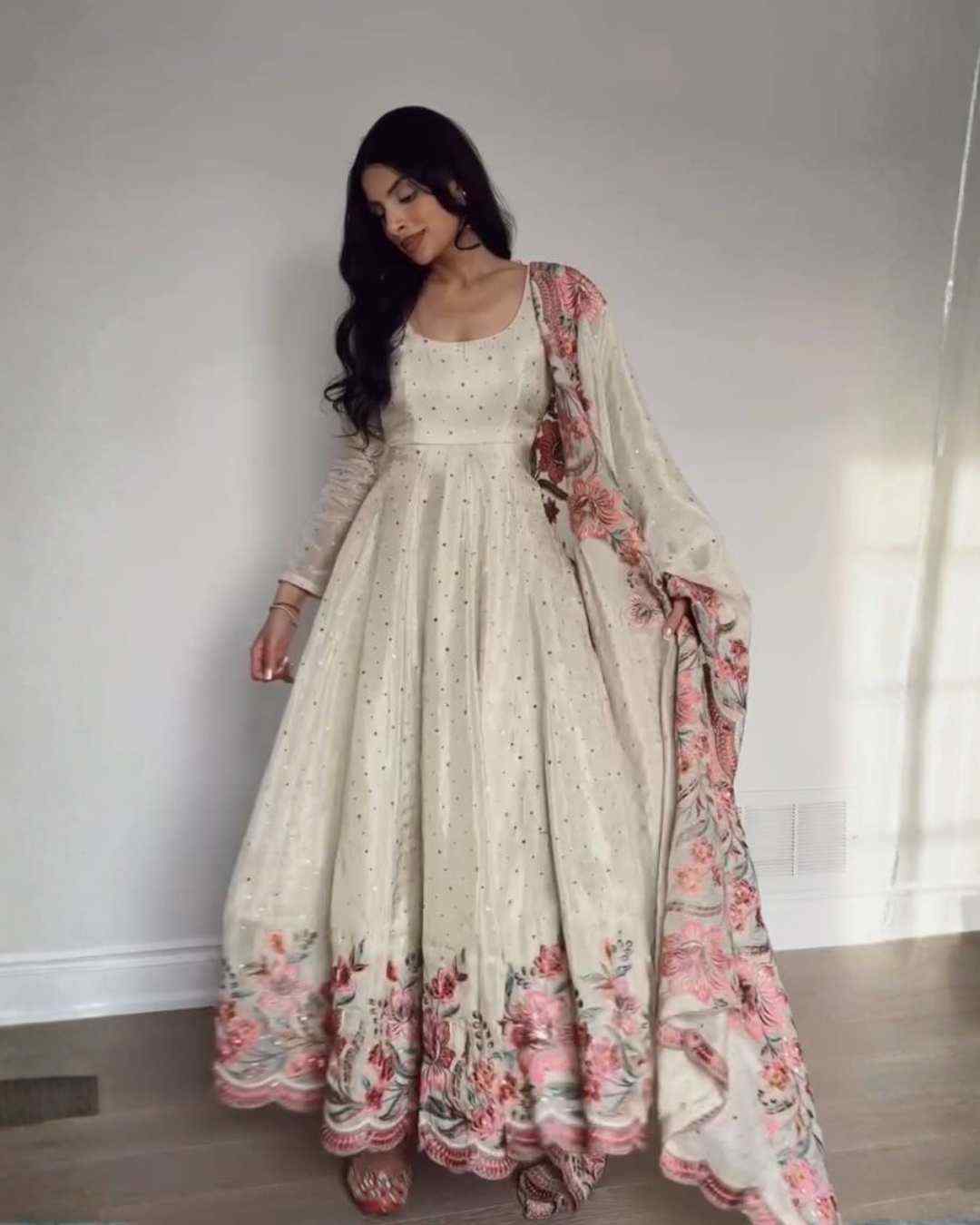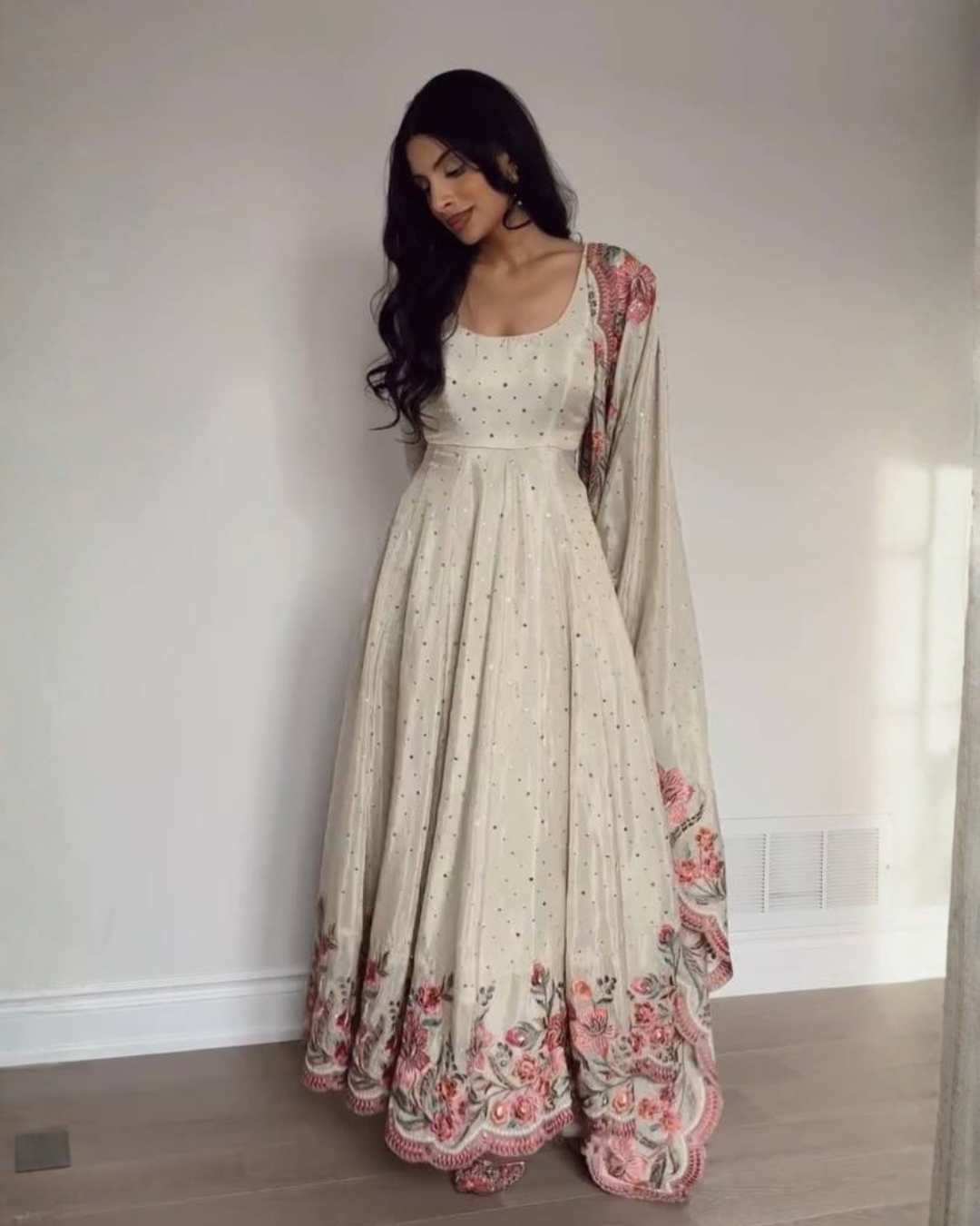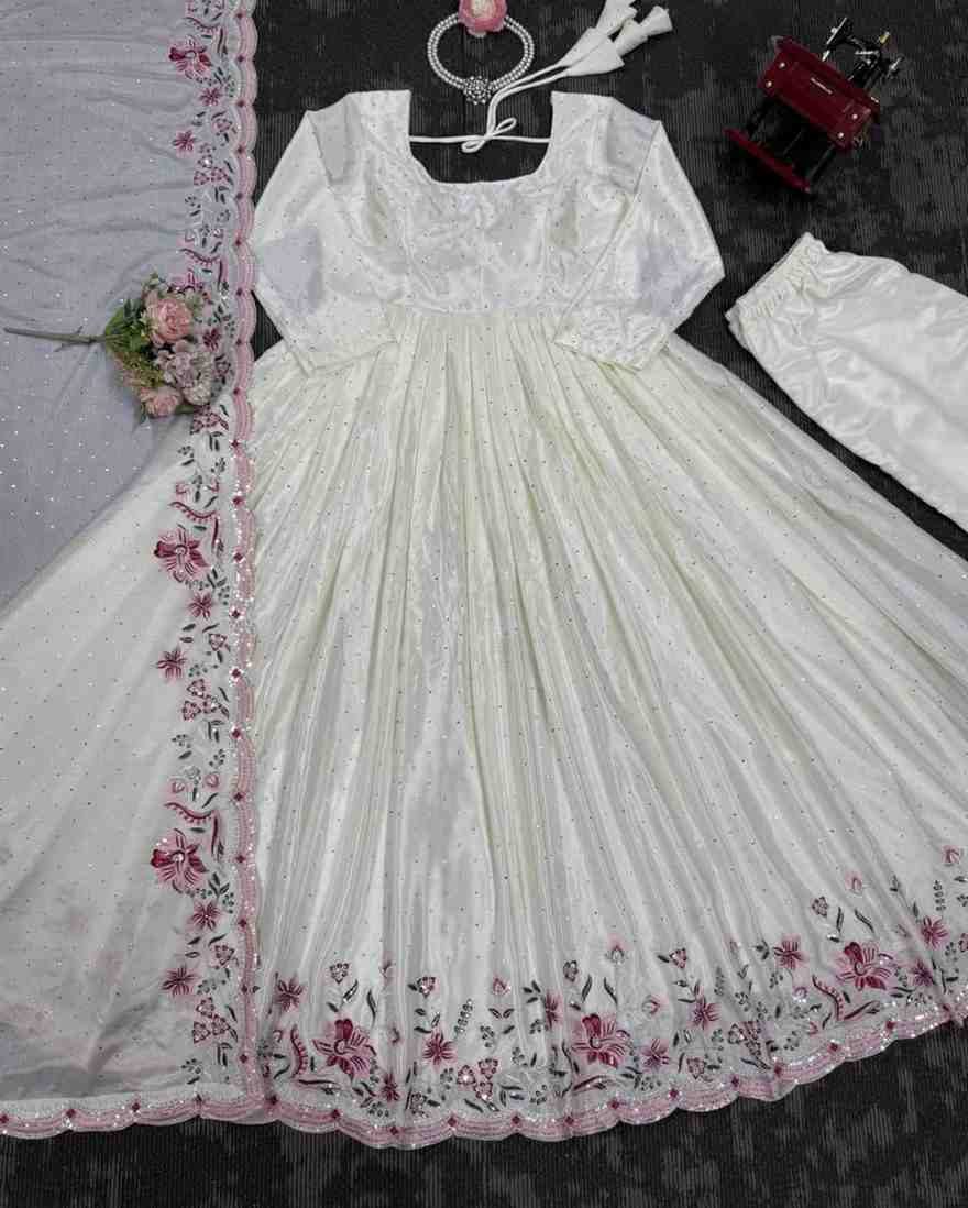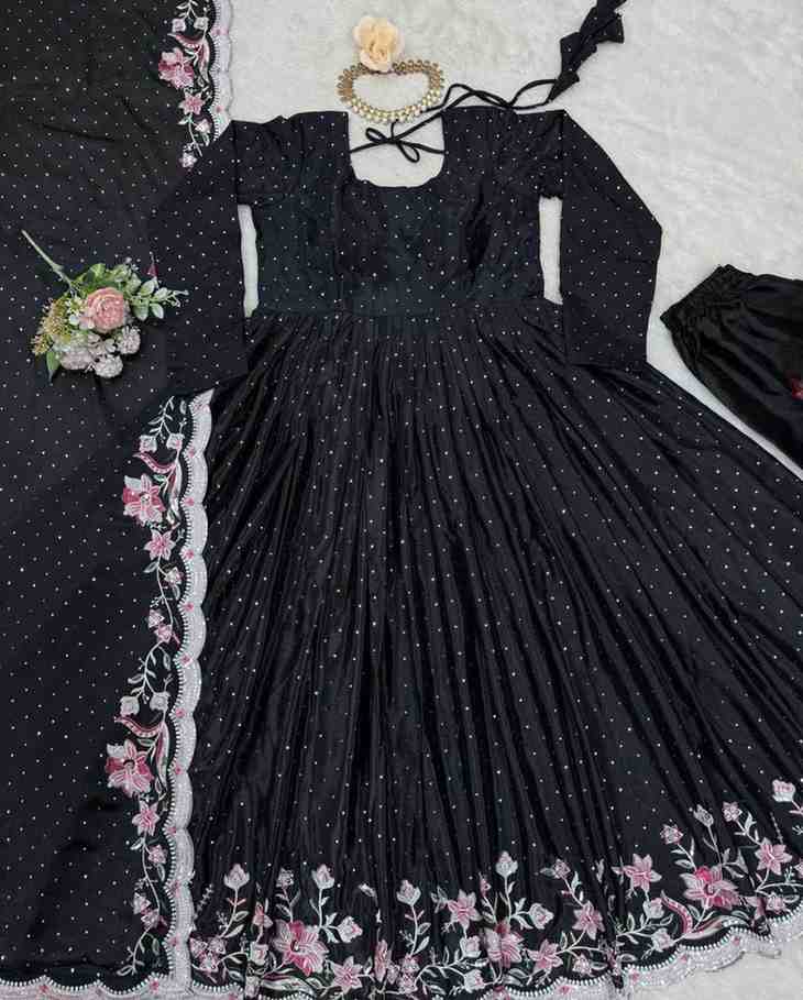 Fabric Type | Top : Chinon silk with Sequence Work , Inner : Micro Pent– Chinon silk and Full Stitch upto 44 with elastic Dupatta :Chinon silk Thread with sequin work , Length : 2.2 meter |