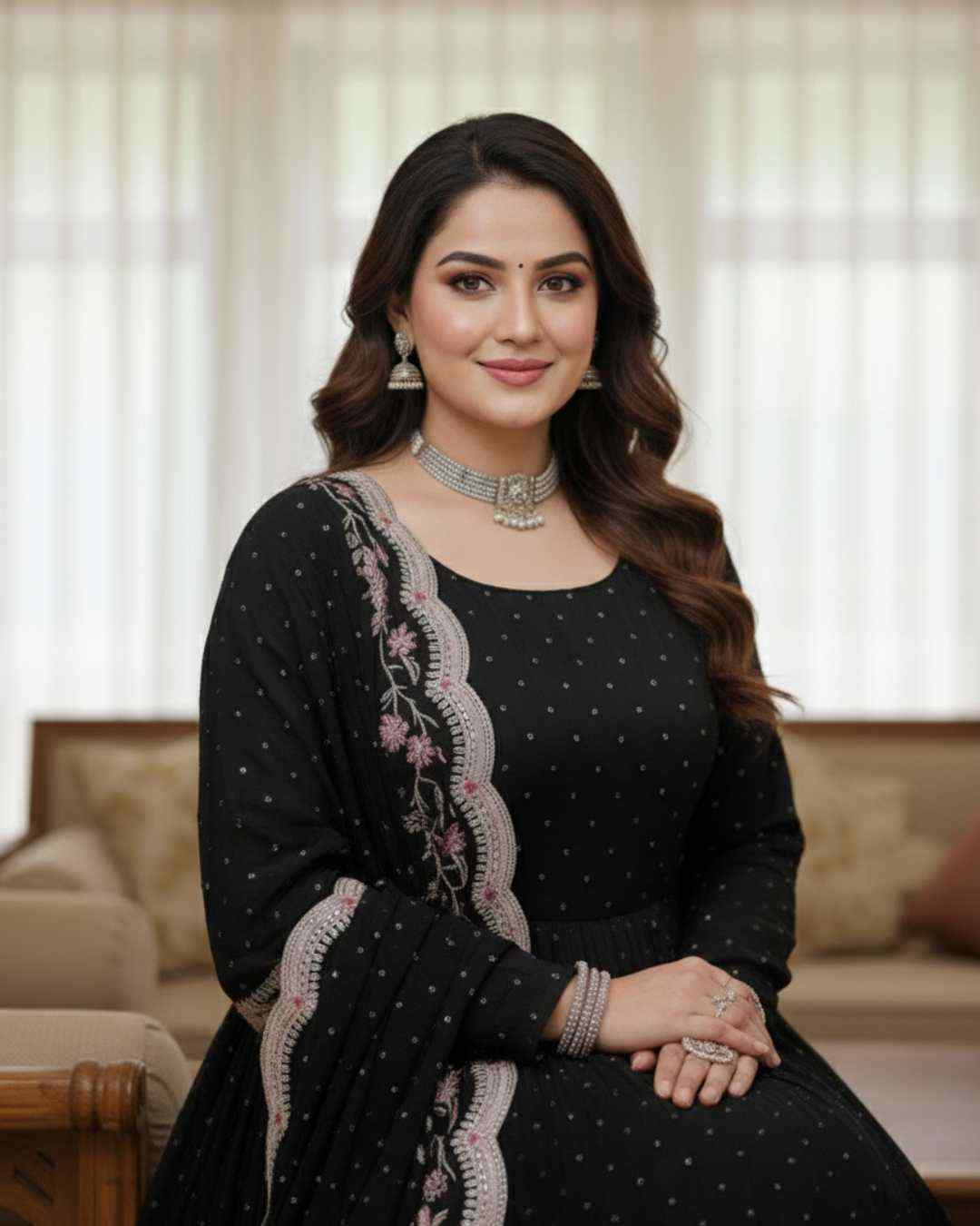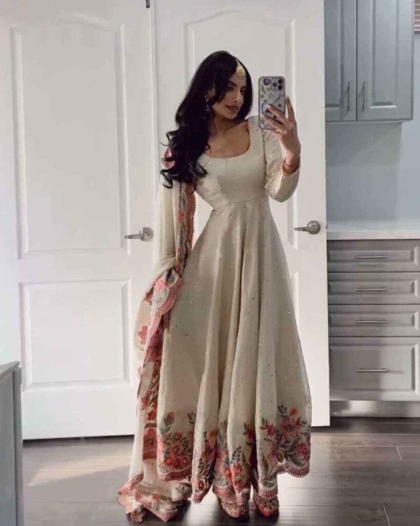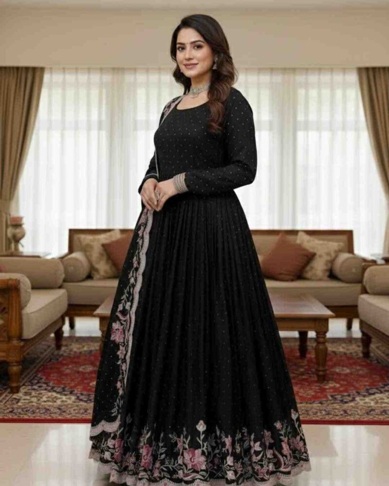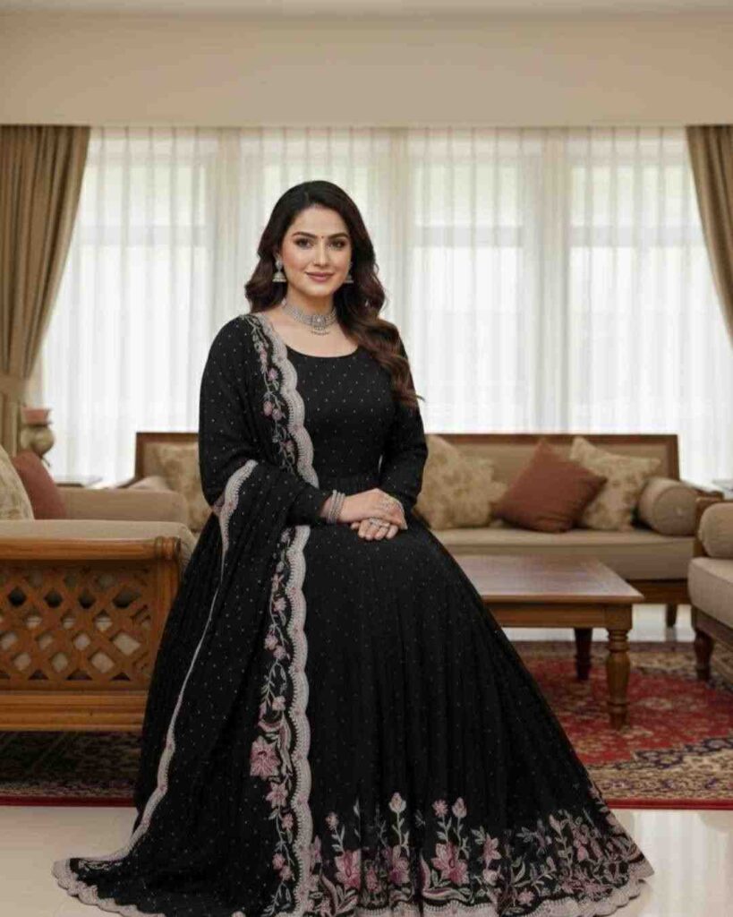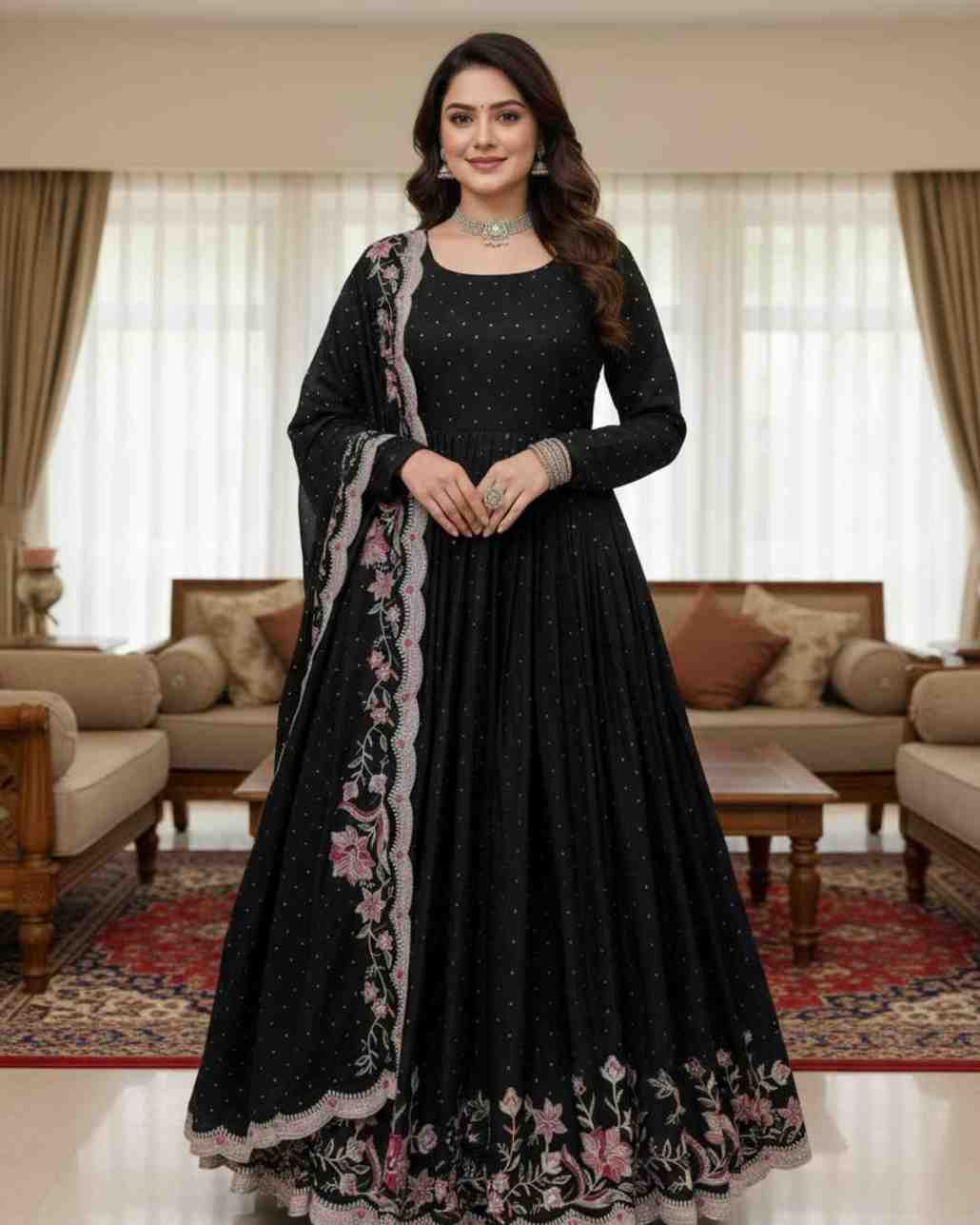 Fabric Type | Top : Chinon silk with Sequence Work , Inner : Micro Pent– Chinon silk and Full Stitch upto 44 with elastic Dupatta :Chinon silk Thread with sequin work , Length : 2.2 meter |