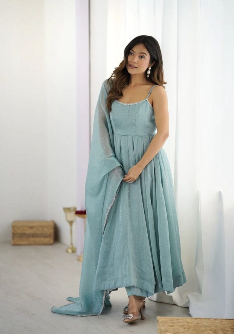 Fabric Type | Top: Crunch silk With Hot fixing Work ,Inner: Micro Pent : Cotton Micro And Full stitch upto 44 with elastic Dupatta:- Crunch silk With Hot fixing Work with Fourside lace border, Length : 2.2 meter |