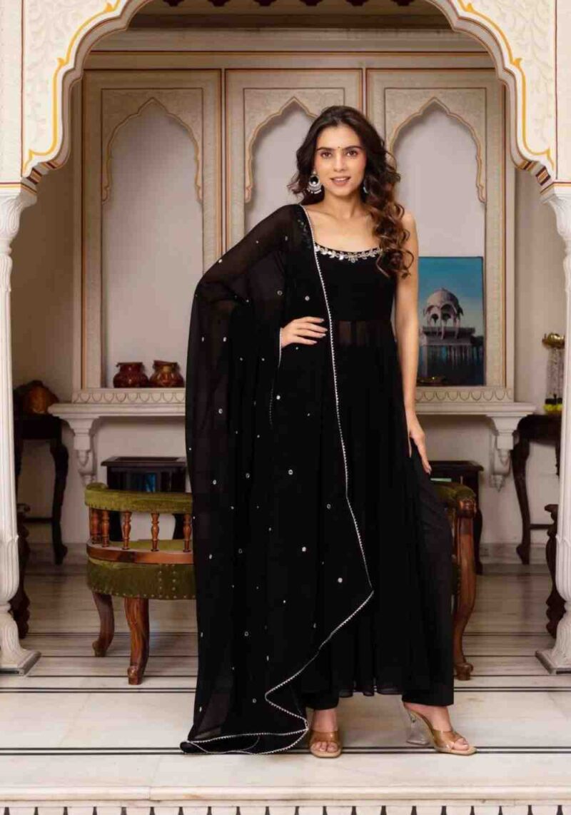 Fabric Type | Top : Faux Georgette With handwork with real mirror | Top Inner : Micro, Pent :Faux Georgette And Inner :- micro And Full stitch up to 44 with elastic, Dupatta : Faux Georgette Work With Fourside Lace Border with Real mirror Length : 2.2 meter. |