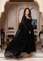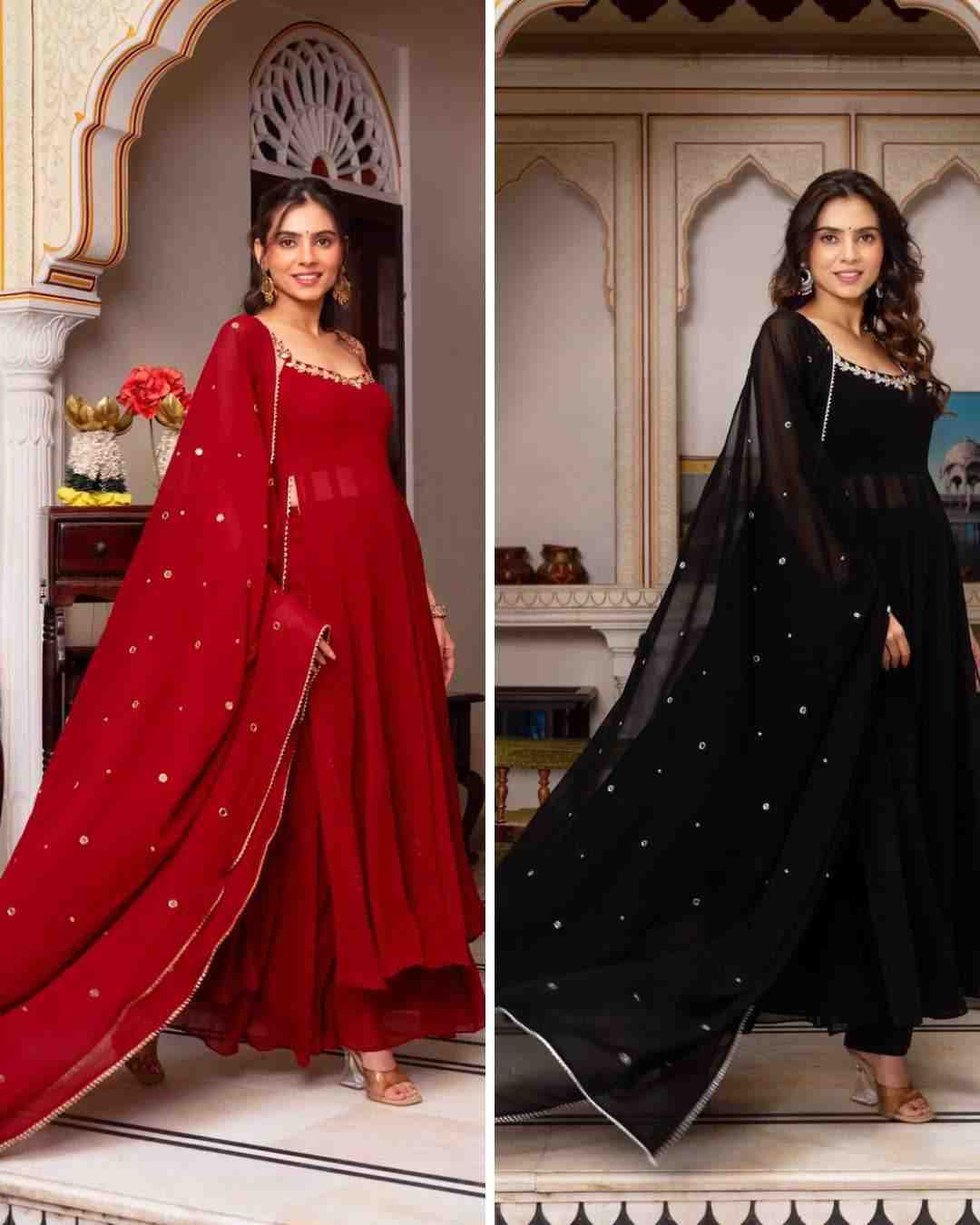 5883 Party wear Hotfix Gown with Cotton Pant & Dupatta