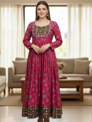 5920 Reyon Kurti With Sequence And Digital Print Work