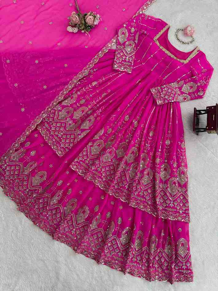 Fabric Type | Suit :Faux Georgette With Thread And Sequence Work , Top Inner :Soft Micro Cotton , Length : 50inch Lehenga : Faux Georgette With Thread And Sequence Work , Full Stitched With Elastic , Length : 40 inch Dupatta:Faux Georgette With Thread with sequence with 4-Side Lace Border , Length: 2.2 meters. |