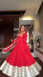 Gown: C*C Georgette With  Coding Dori  with Sequence Work , Top Inner :Soft  Micro Cotton , Length : 52 inch Bottom: Micro Cotton, Full Stitched With Elastic , Length : 38 inch