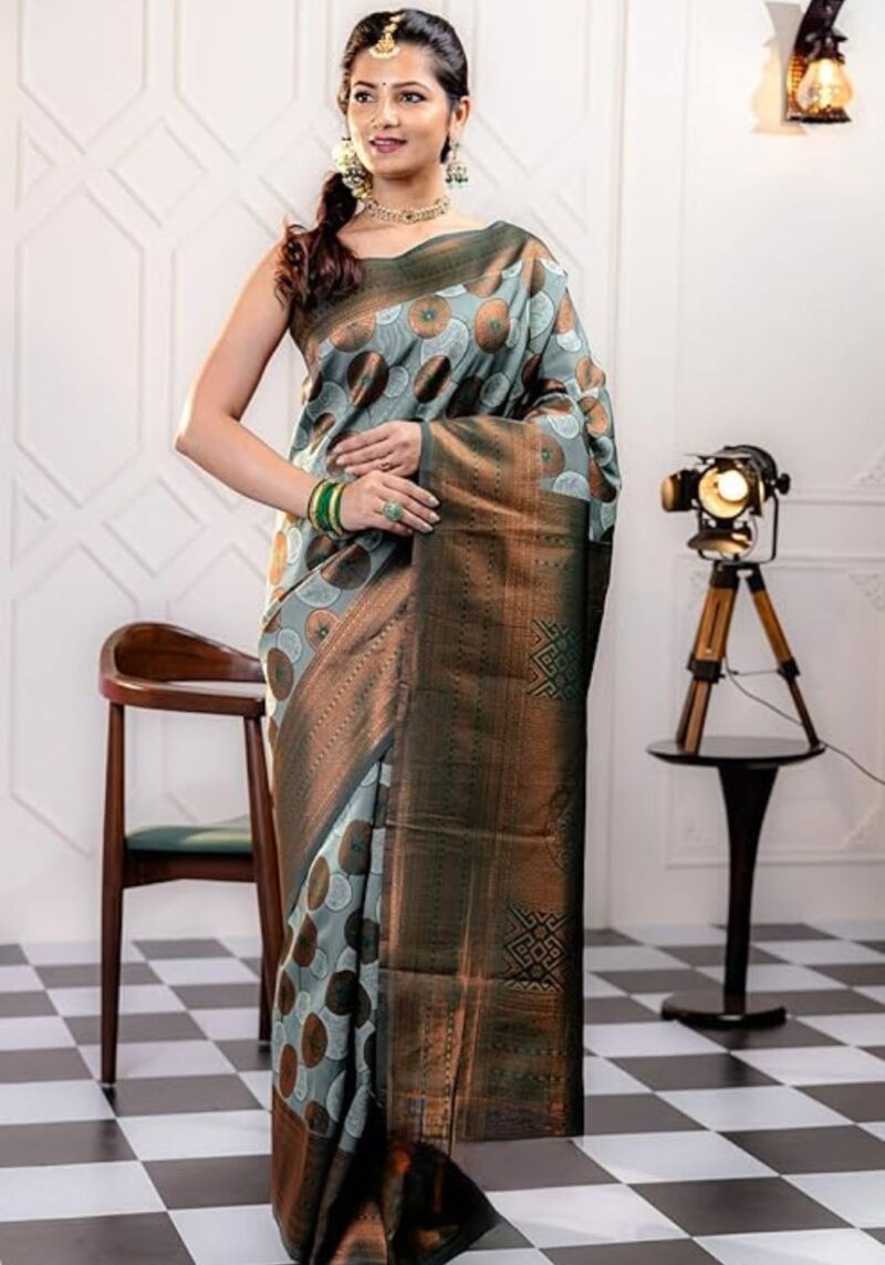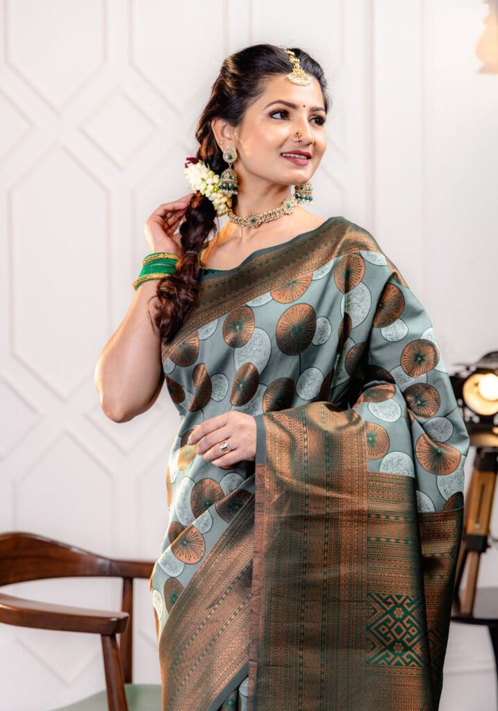 8043-Peacock Art Silk Saree with Mesmerizing Feather Design