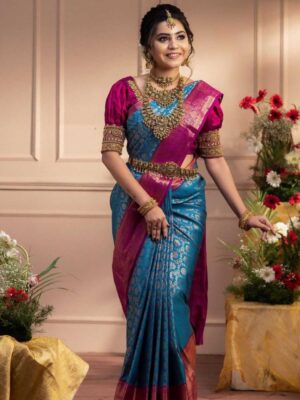 RAJMATA BOTTLE BLUE PINK Art Silk Saree with Majestic Contrast