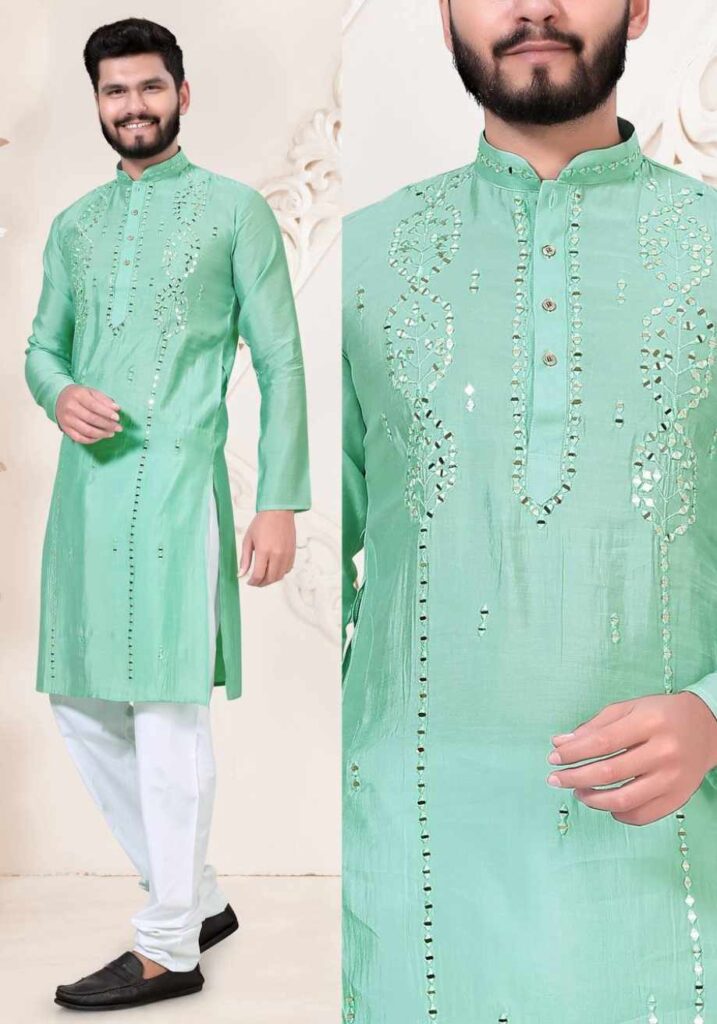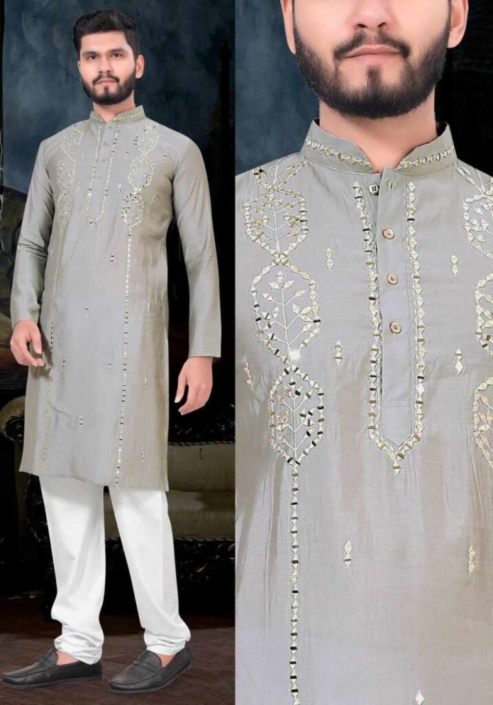 Vardhman Mono Silk fabric With Embroidery Work Kurta Pajama