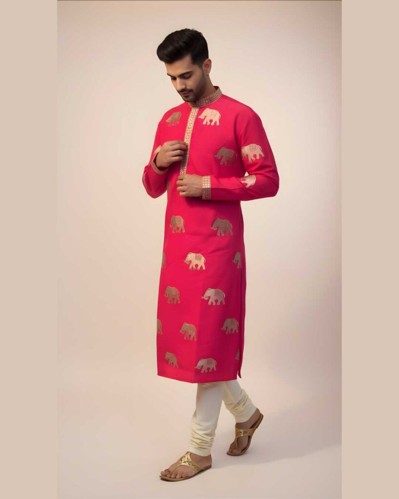 Designer Elephant Roman Silk Kurta with Fine Embroidery Collection Full Catalog Available At Wholesale Rate.