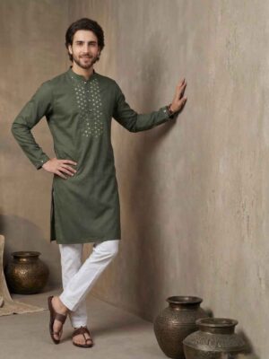 Olive Green with Silk Fabric & Mirror Work Kurta