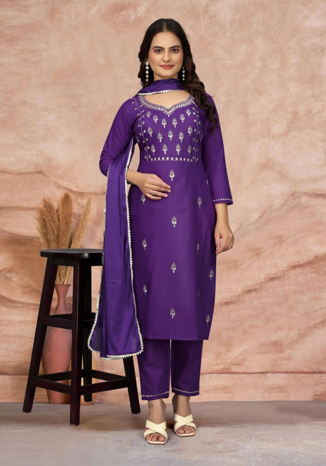 Pushpa Silk Blend Kurti Set with Embroidered Work