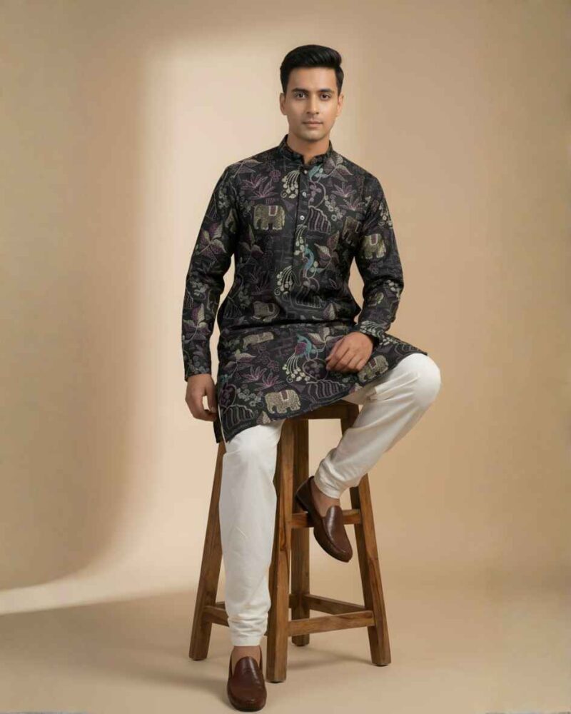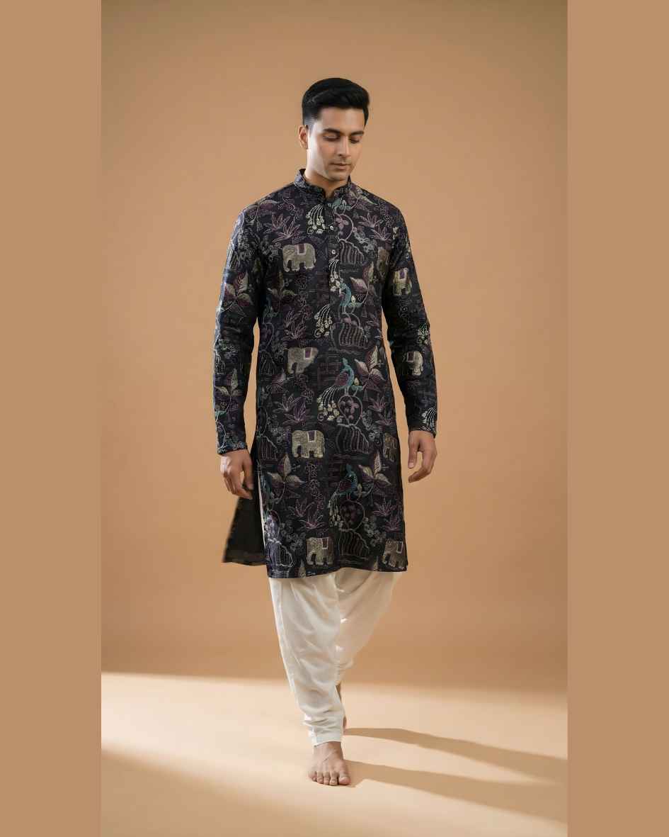 Hathi Kurta With Khadi Cotton Fabric in Embroidery Collection Full Catalog Available At Wholesale Rate.