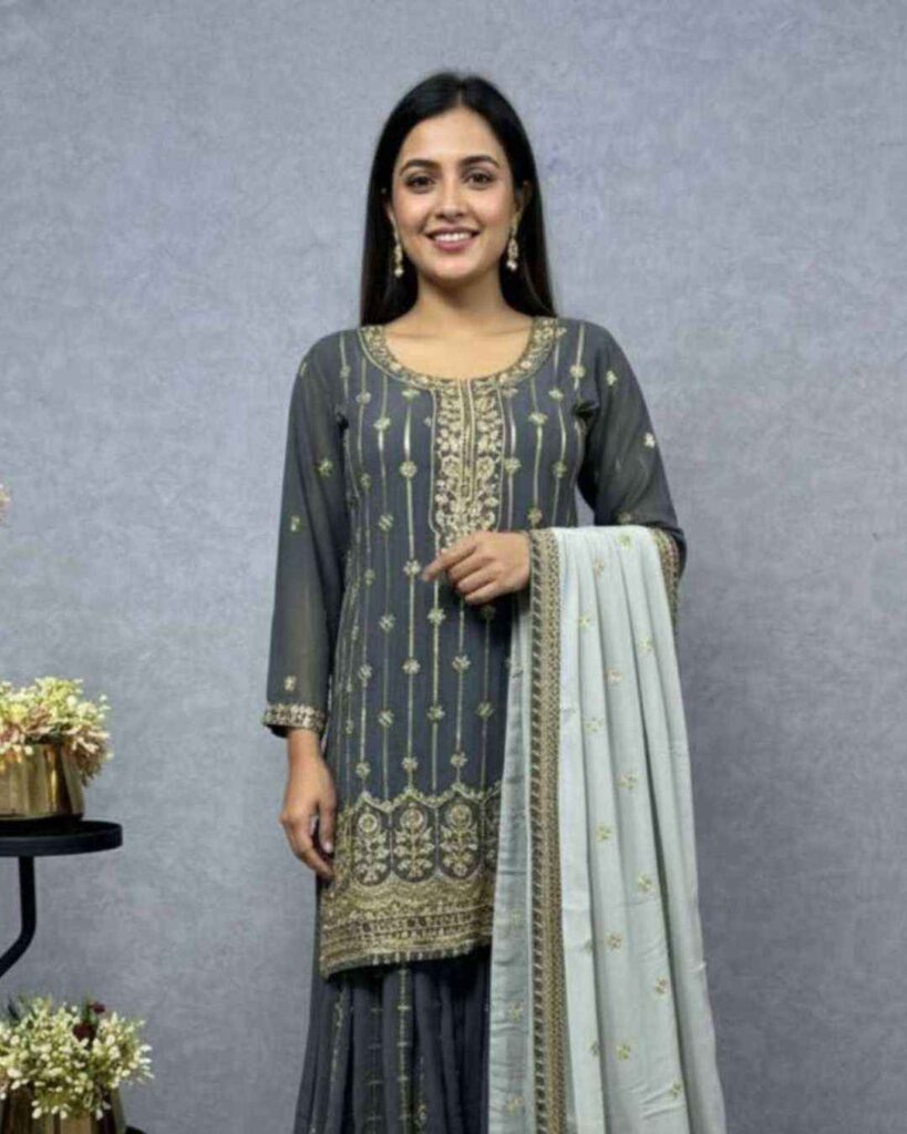 JD 583 Elegant Faux Georgette Palazzo Suit Set Collection Full Catalog Available At Wholesale Rate.