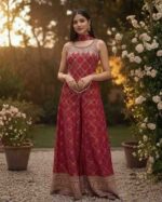 JD 590 Chinon Silk with Embroidery work Palazzo Suit Collection Full Catalog Available At Wholesale Rate.