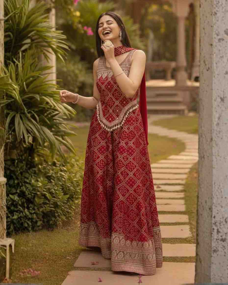 Fabric Type | Top/Palazzo: Pure chinon Silk With Micro Inner Cotton Dupatta : Heavy Faux Georgette |