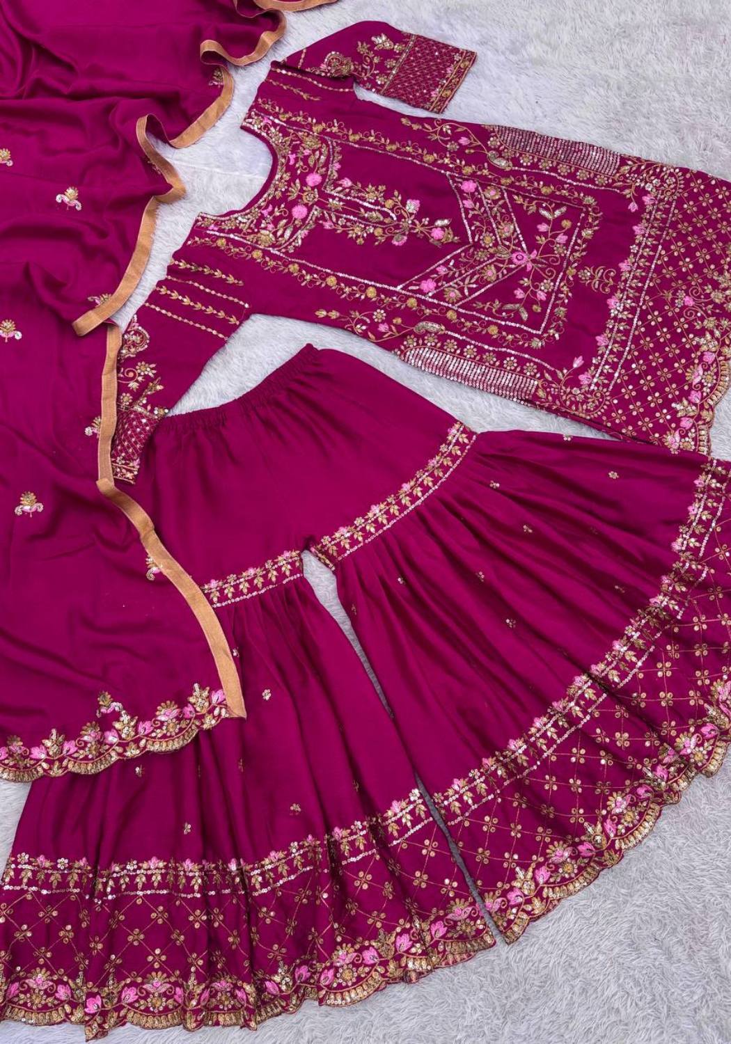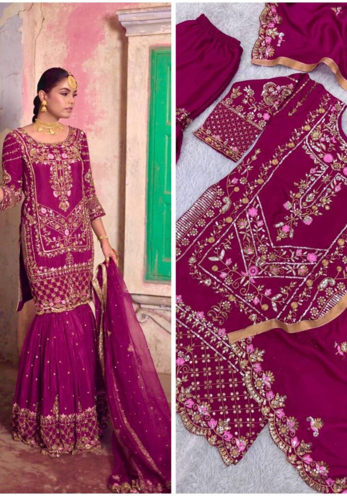 JD-595 Ethnic Chinon Silk Sharara Set Collection Full Catalog Available At Wholesale Rate.