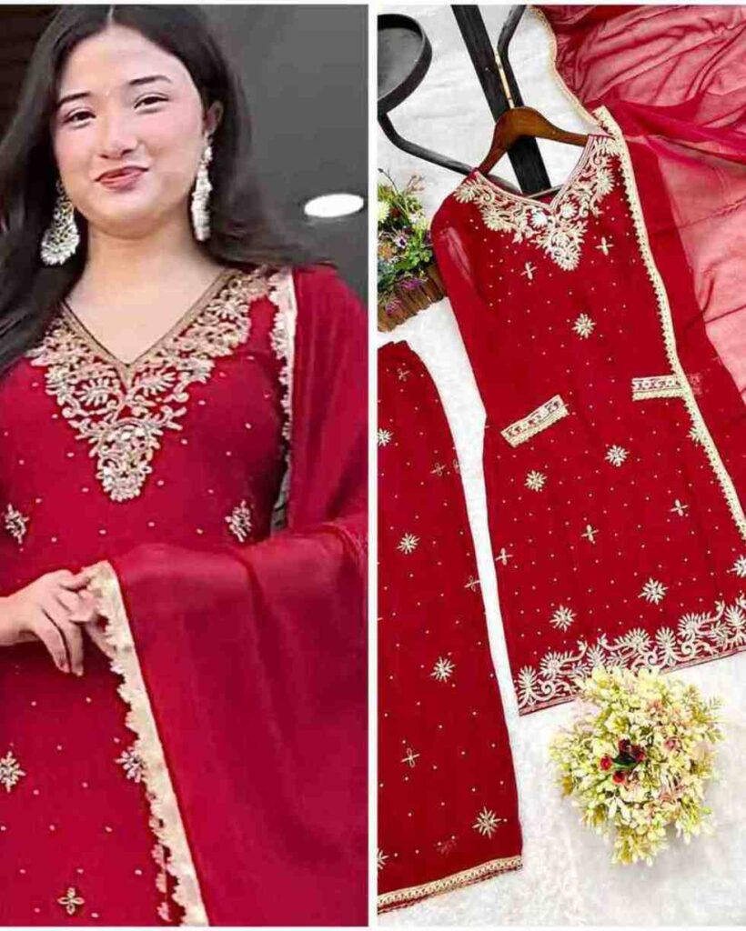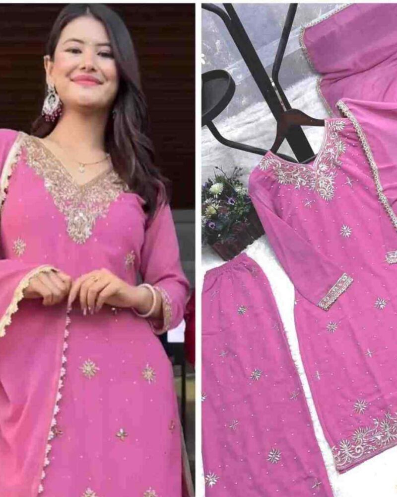 Palazzo : Heavy Faux Georgette With Beautiful Embroidery Sequence Work And Riveted Moti Work  , Inner : Heavy Micro Cotton , Length : 40-42 inch
