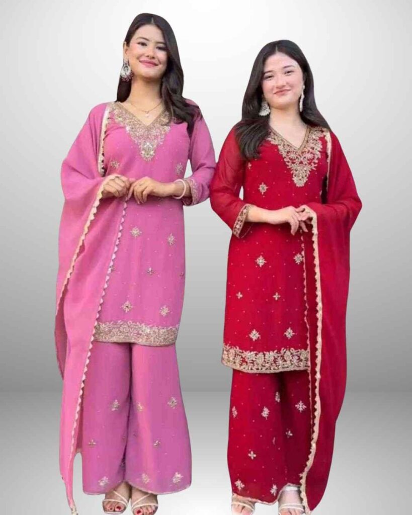 JD_603 Faux Georgette  Palazzo SUIT Collection Full Catalog Available At Wholesale Rate.