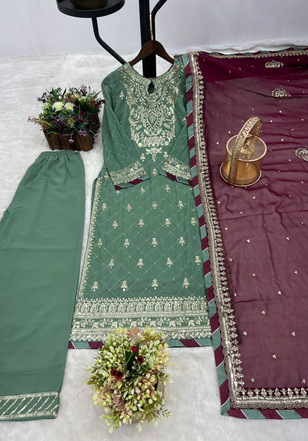 JD-608 Chinon Kurti Palaza Set with Faux Georgette Dupatta