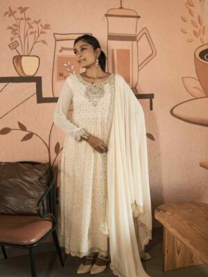 JD-615 Georgette Gown And Dupatta With Embroidery Work