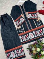 JD-619 Gold Crush Silk In Palazzo Suit With Beads Work