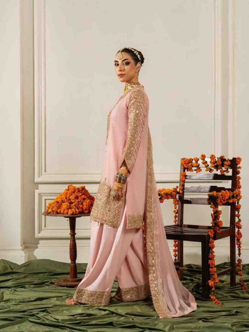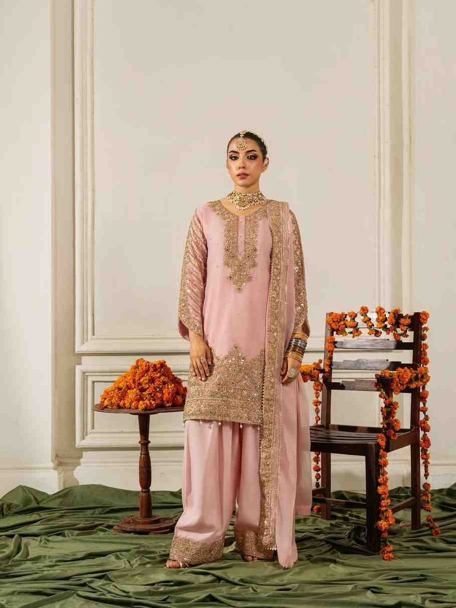 JD-619 Gold Crush Silk In Palazzo Suit With Beads Work