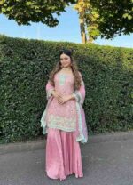 Be the first to review “JD-624 Chinon Silk Palazzo Suit With Embroidery Work”