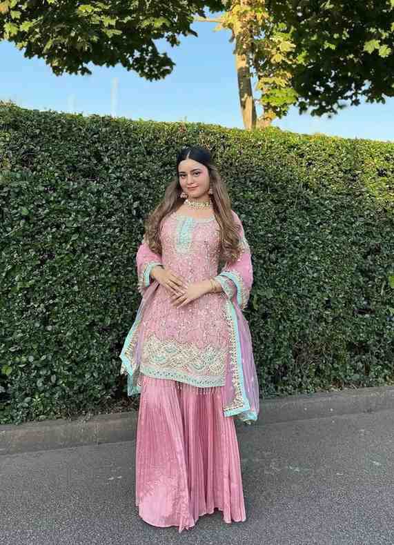 Kurti :Pure Chinon Silk , Work: Attractive Embroidery Sequence Work And Thread Work. , Inner : Heavy Micro Cotton , Length : 34-35 Inch