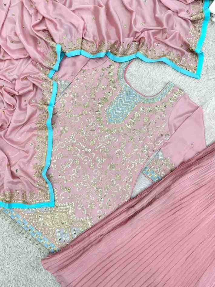 JD-624 Chinon Silk Palazzo Suit With Embroidery Work Collection Full Catalog Available At Wholesale Rate.
