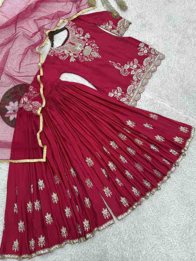 JD-626 Pure Chinon Silk Palazzo Suit With Sequence Work Collection Full Catalog Available At Wholesale Rate.