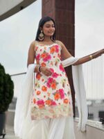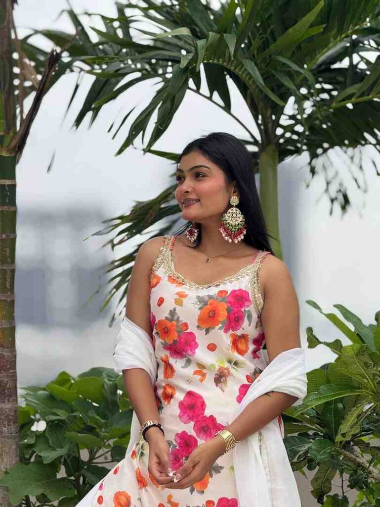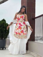 Fabric Type | Kurti :Pure Chinon Silk , Work: Attractive Embroidery Sequence Coding Work And Trendy Digital Print , Inner : Heavy Micro Cotton , Length : 38 Inch Palazzo :Heavy Faux Georgette , Inner : Heavy Micro Cotton , Length :39 inch Dupatta :Heavy Faux Georgette , Work : Beautiful Ready made lace Border ,Length : 2.10Mtr. |