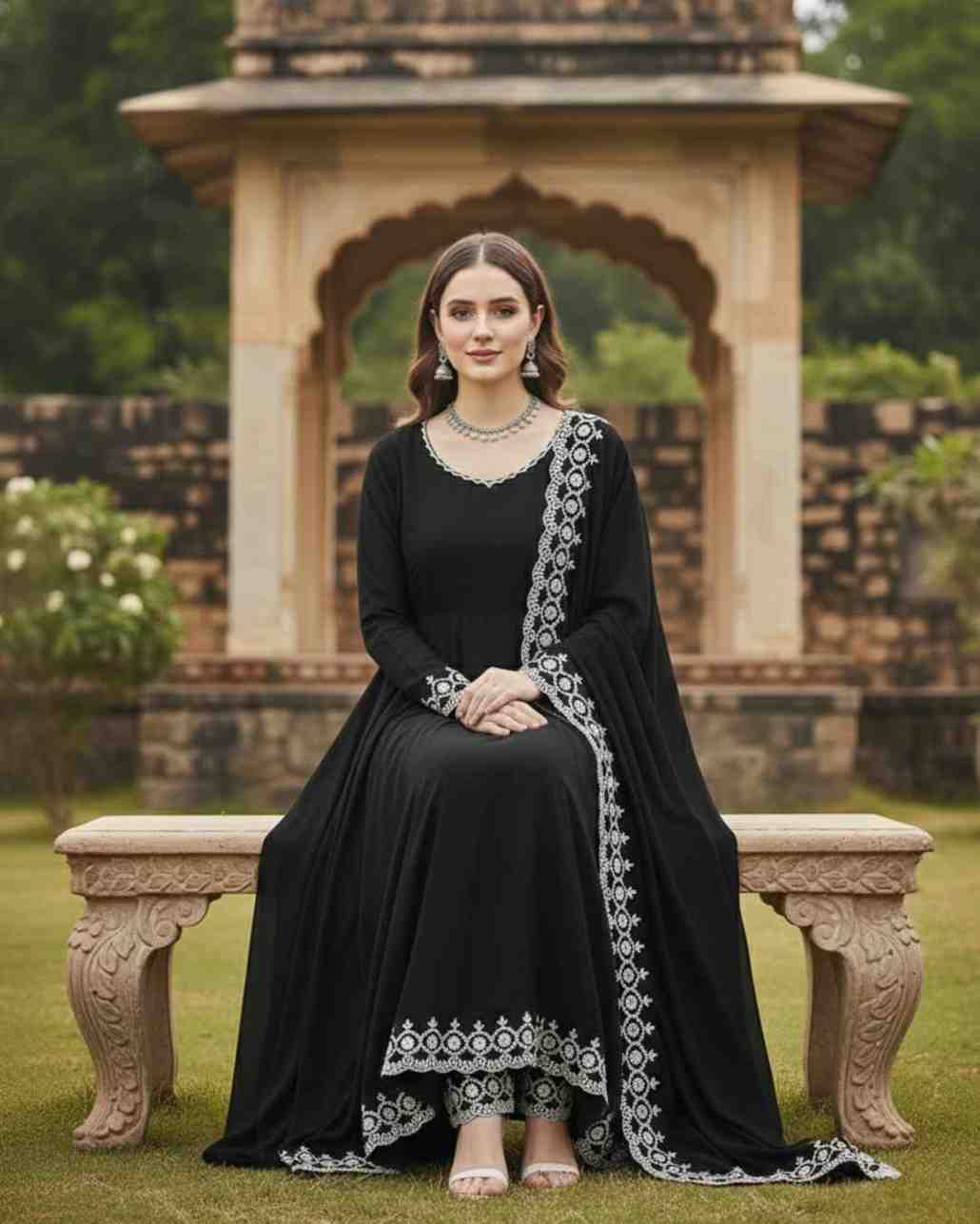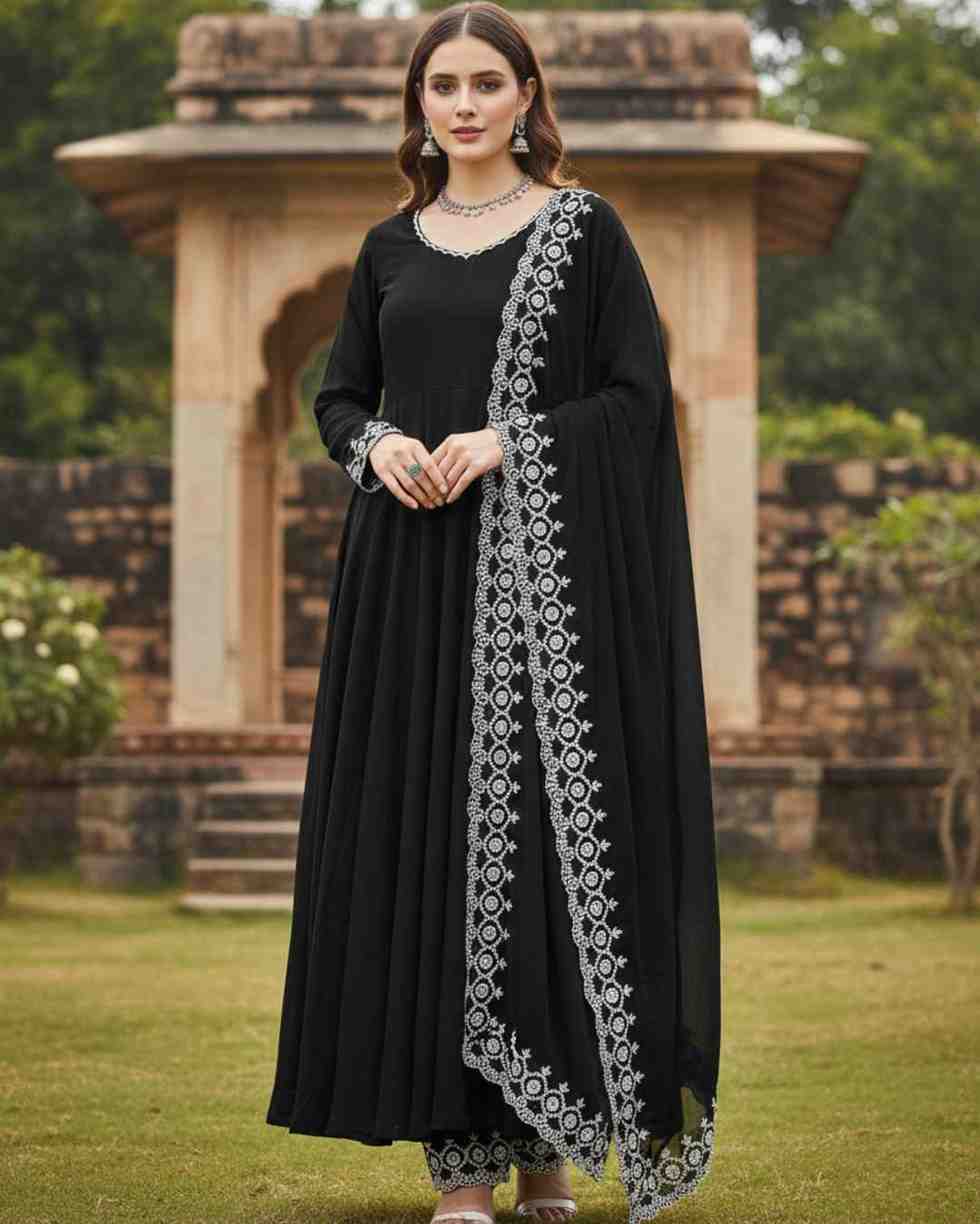 JL-1027 Crunchy Silk With Sequence work Anarkali Gown Set