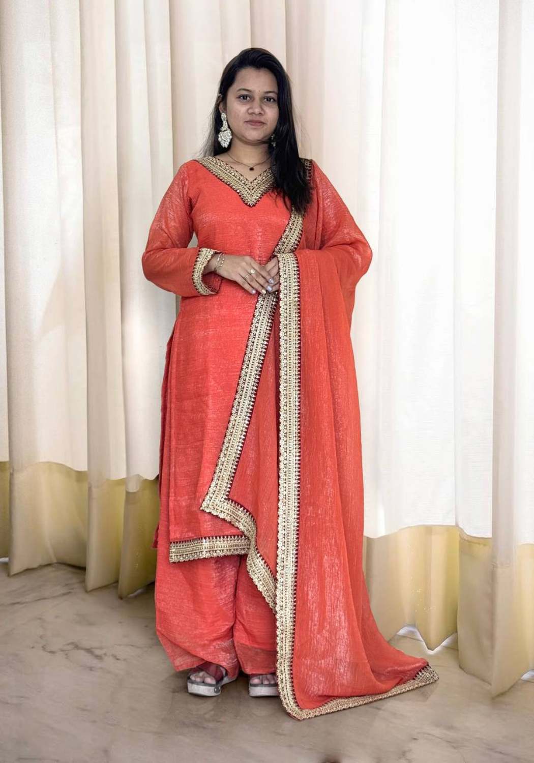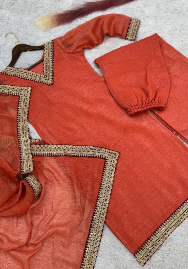 Fabric Type | Top/Palazzo : Gold Crush Silk with Inner-Heavy Micro Cotton | Dupatta -Gold Crush Silk |