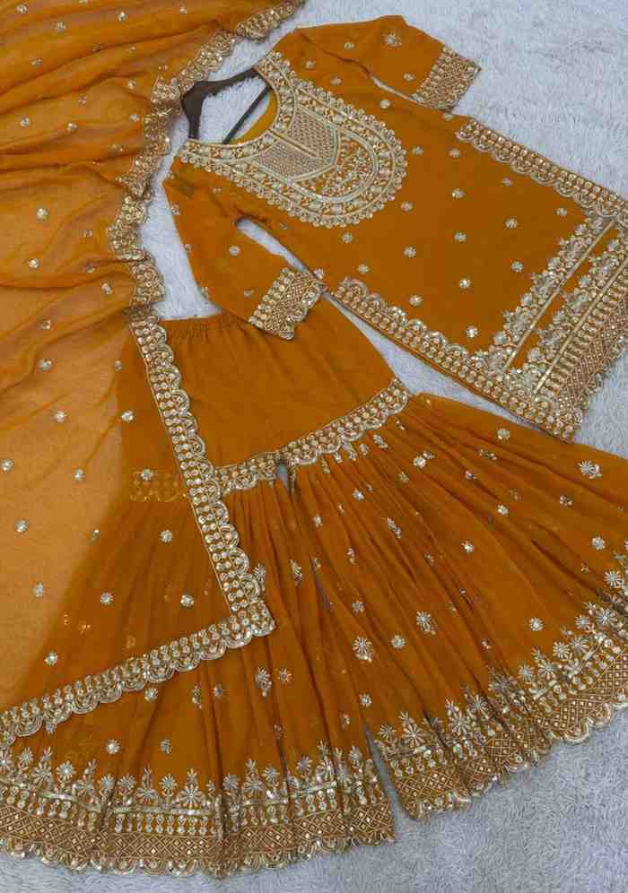 Fabric Type | Kurti :Faux Georgette with inner micro Cotton Sharara :Faux Georgette with inner micro Cotton Dupatta – Faux Georgette With Sequence Work |
