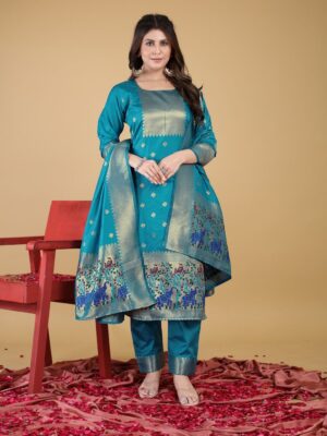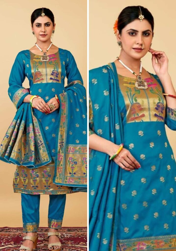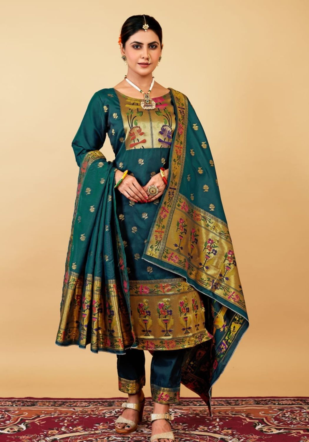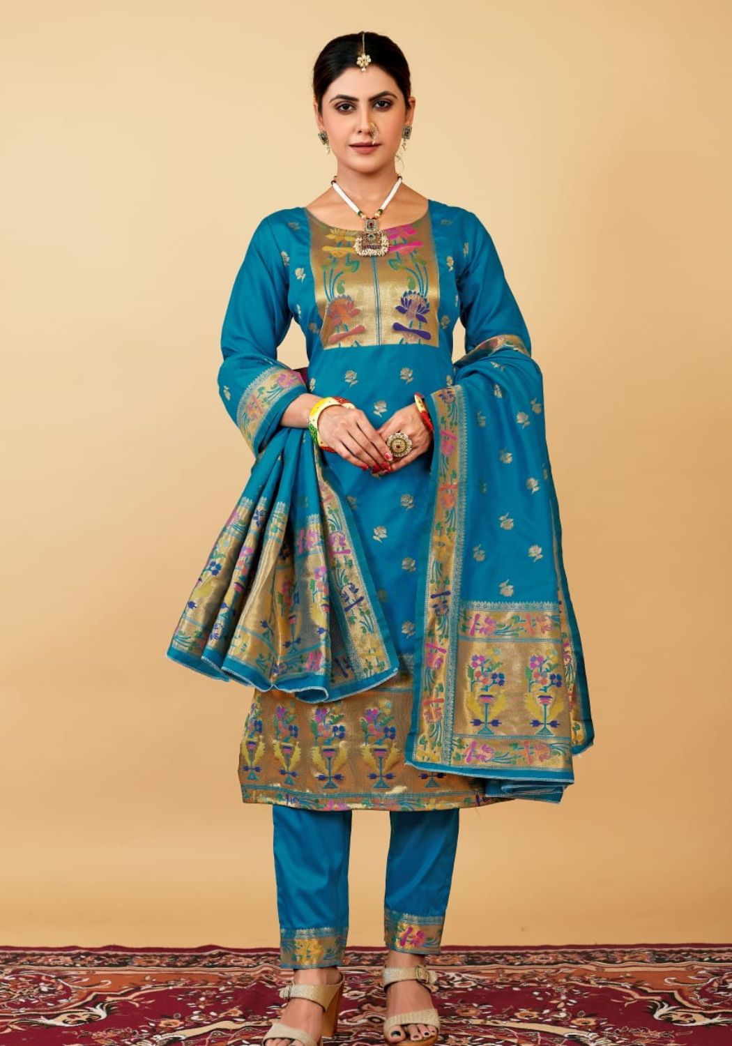 Eshani Paithani Suit in Pure Soft Silk with Dupatta