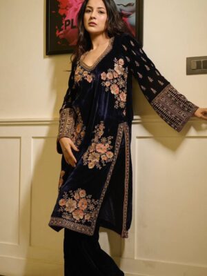 KD-1488 Velvet Suit with Sequence & Pearl Detailing