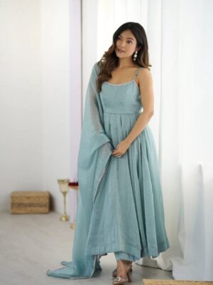5883 Party wear Hotfix Gown with Cotton Pant & Dupatta