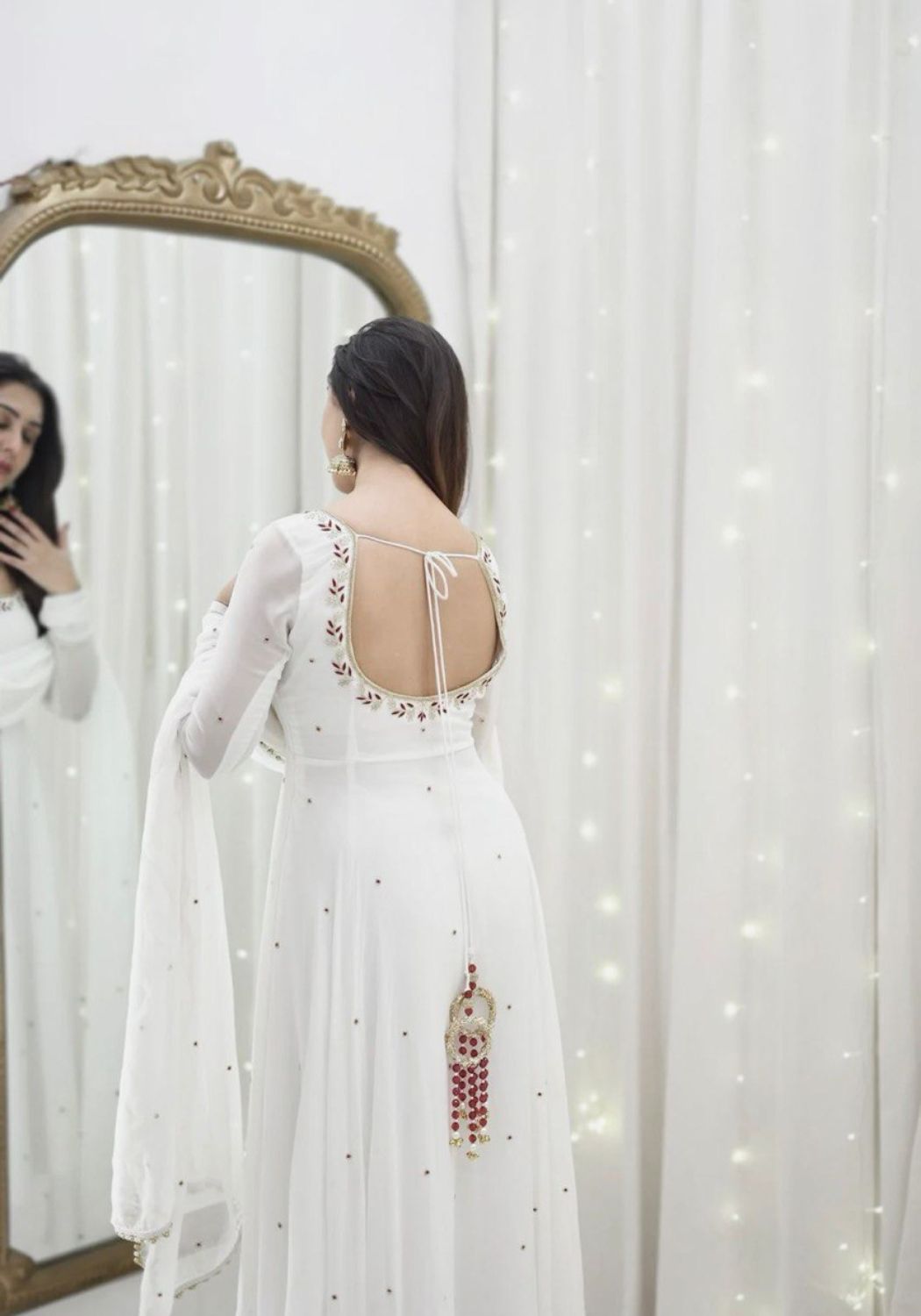 Fabric Type | Anarkali :Faux Georgette with inner Work:-Hand work Pent:-Crep Work : Plain ,Size: Free(Stitch With Elastic) Dupatta:-Faux Georgette Work:Hand Work With Fancy Lace and 2.2 meter |