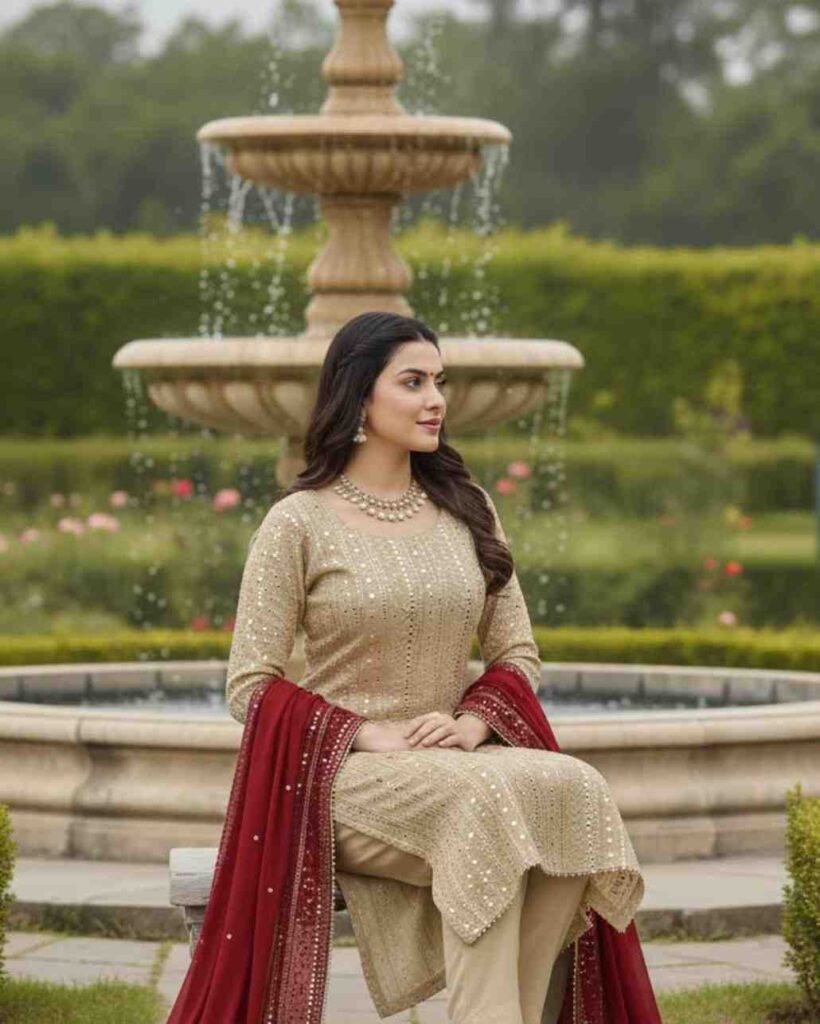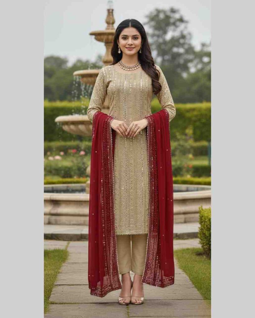 Fabric Type | Suit :Faux Georgette With Inner & Thread &9mm Sequence Work Pent:Micro Cotton With Size Full Stitch With Elastic Dupatta :Faux Georgetter & Thread &9mm Sequence Work With 4 Side Fancy Lace Border ,Length :2.2 mtr. |