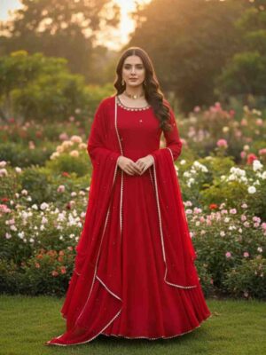 KD-1527 Faux Georgette Gown And Dupatta With Fancy Lace