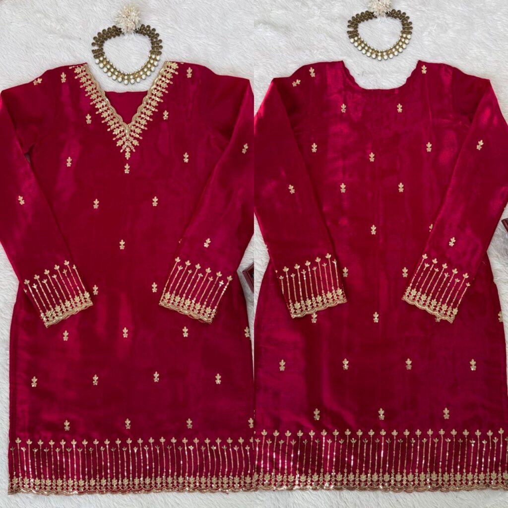 Fabric Type | TOP: Jimmy choo With Soft Micro inner & Work: Intricate Thread With Sequence Work PALAZZO :Jimmy choo With Micro inner & Work: Intricate Thread With Sequence Work Dupatta: Jimmy choo ,Work: Intricate Thread With Sequence Work & Length:2.10 Mtr. |
