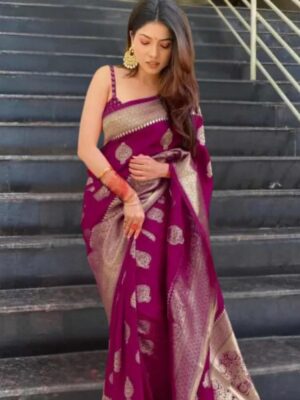 MOTI WINE Art Silk Saree with Luxurious Brocade Charm