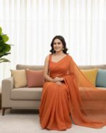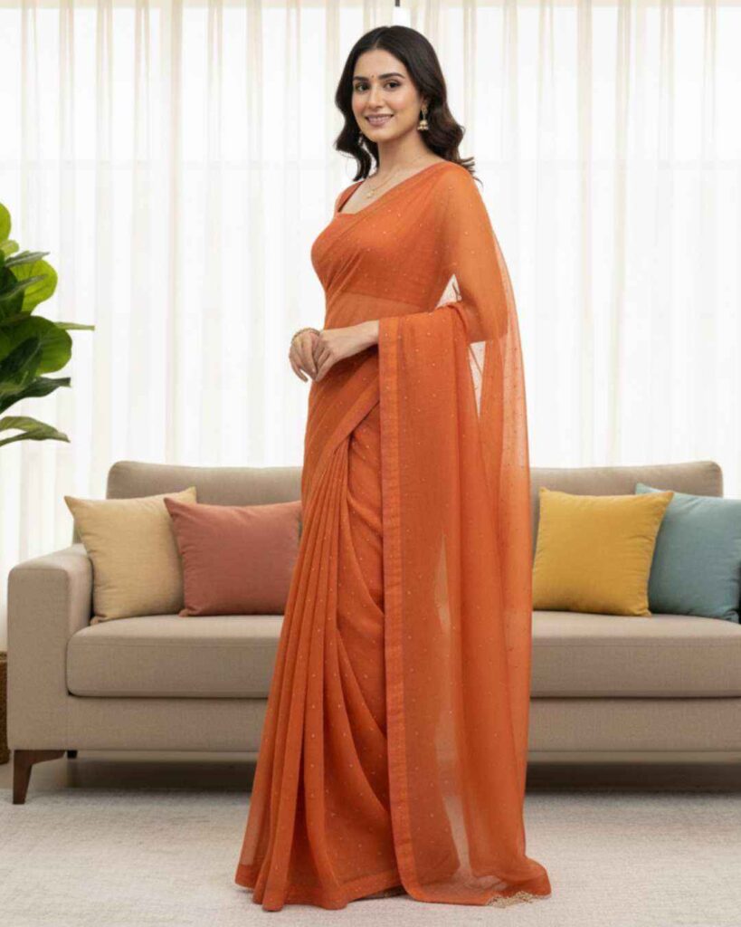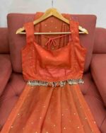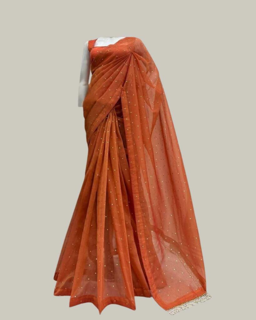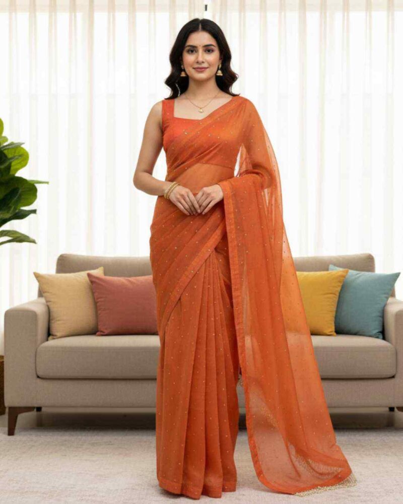 Fabric Detail | Saree : Chimar Tissue Silk Blouse : Chimar Tissue Silk & inner ,Cut :0.80cm Un-stitched , With Front and back both side work With Heavy Fancy Lace |