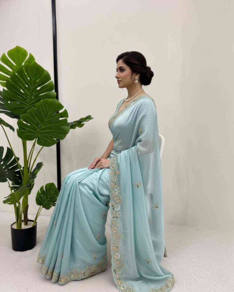 KD-563 Embroidered Zimmy Chu Saree Collection Full Catalog Available at Wholesale Rate.