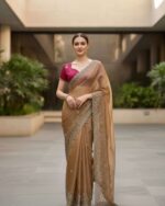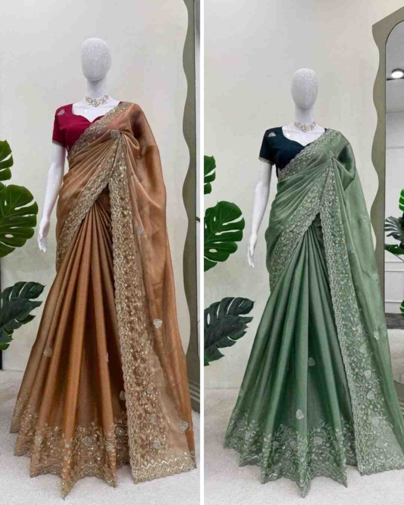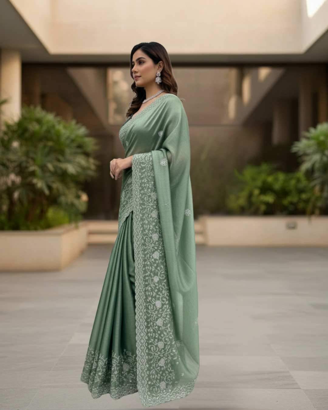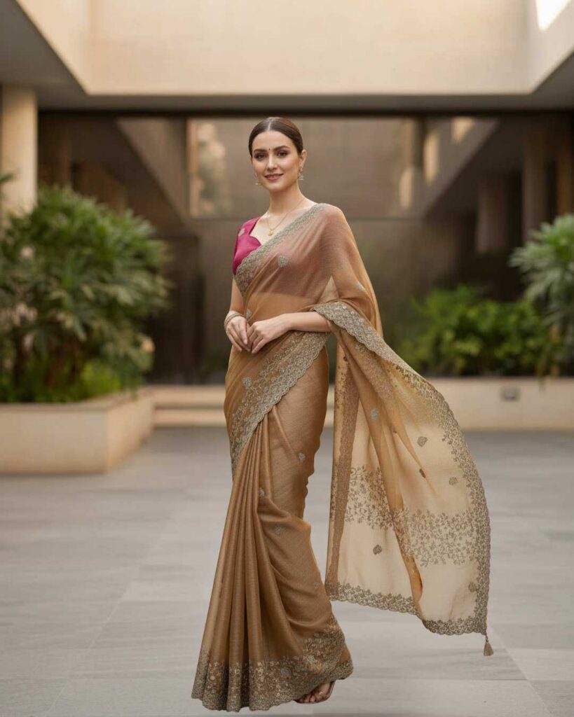 KD-570 Faux Georgette Saree, Thread Work & Latkan